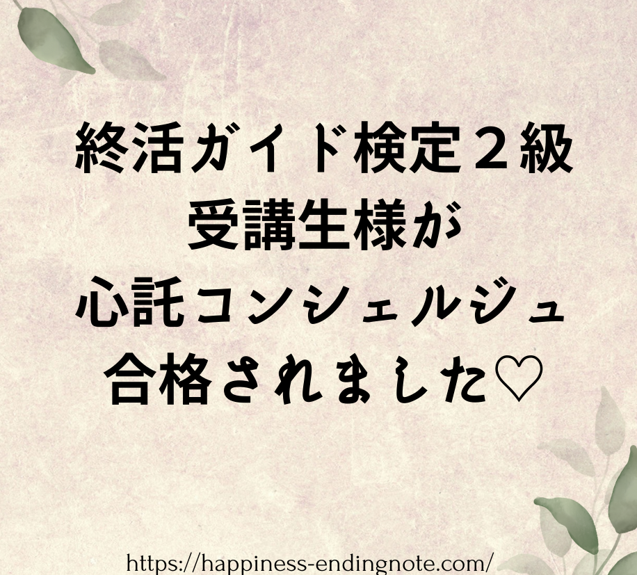 終活ガイド検定2級 受講生様が 心託コンシェルジュ 合格されました♡