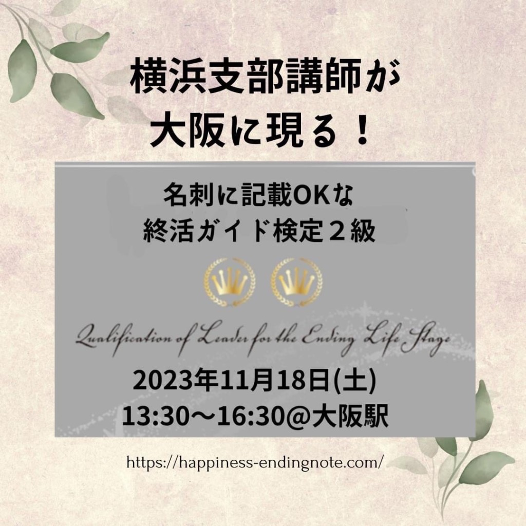 大阪に初上陸にて終活ガイド検定2級開催!